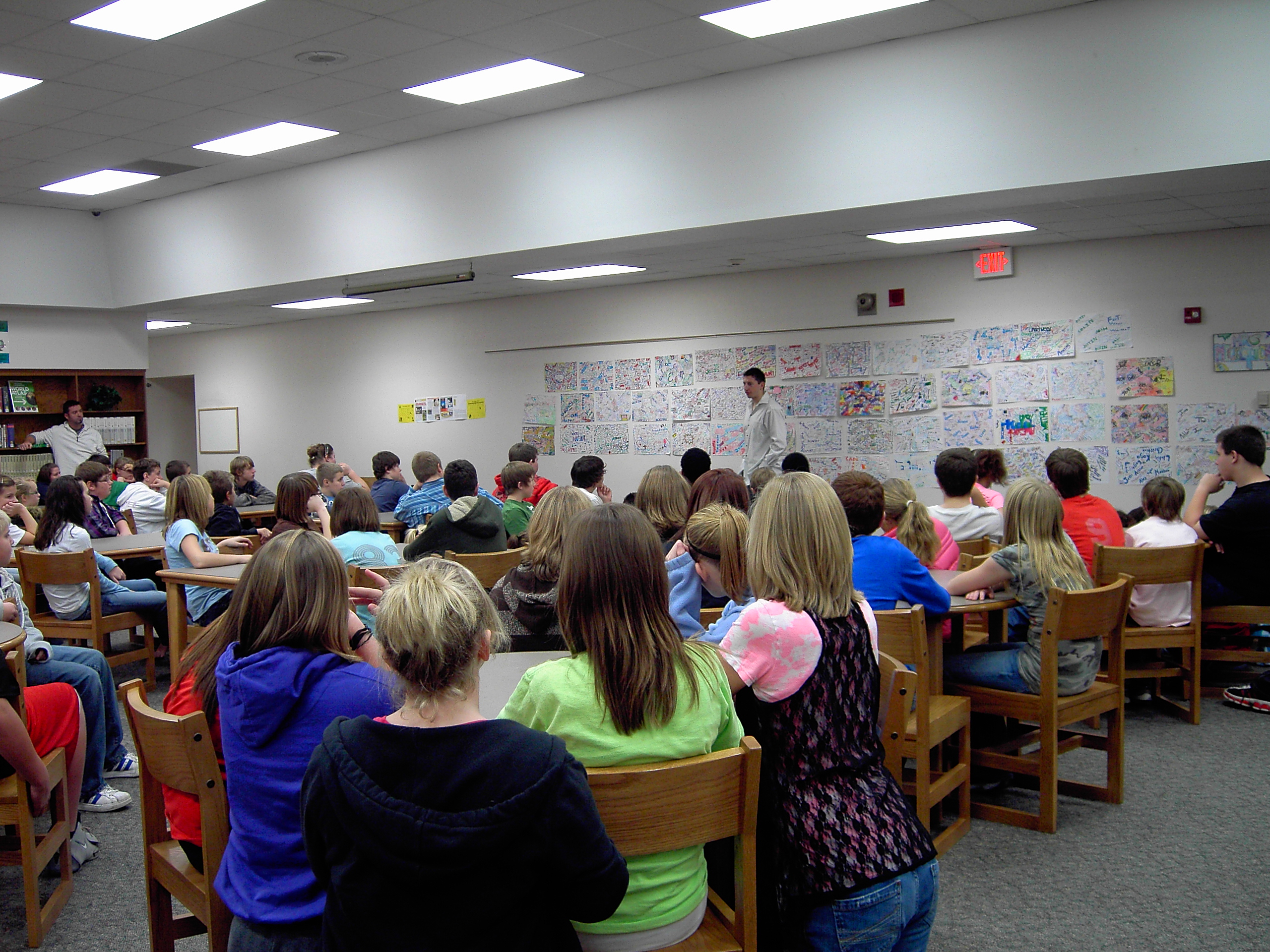 My son, Christopher, was home for Thanksgiving. During his visit, he spoke to 250 people at Bluffton Middle School, including the entire 7th and 8th grades, about his career as a pilot with the Air Force. Chris is a graduate of the US Air Force Academy and a First Lieutenant. Currently, he flies remotely powered aircraft (RPAs) called Predators. He is stationed in LV but his planes are in Afghanistan. Wow!