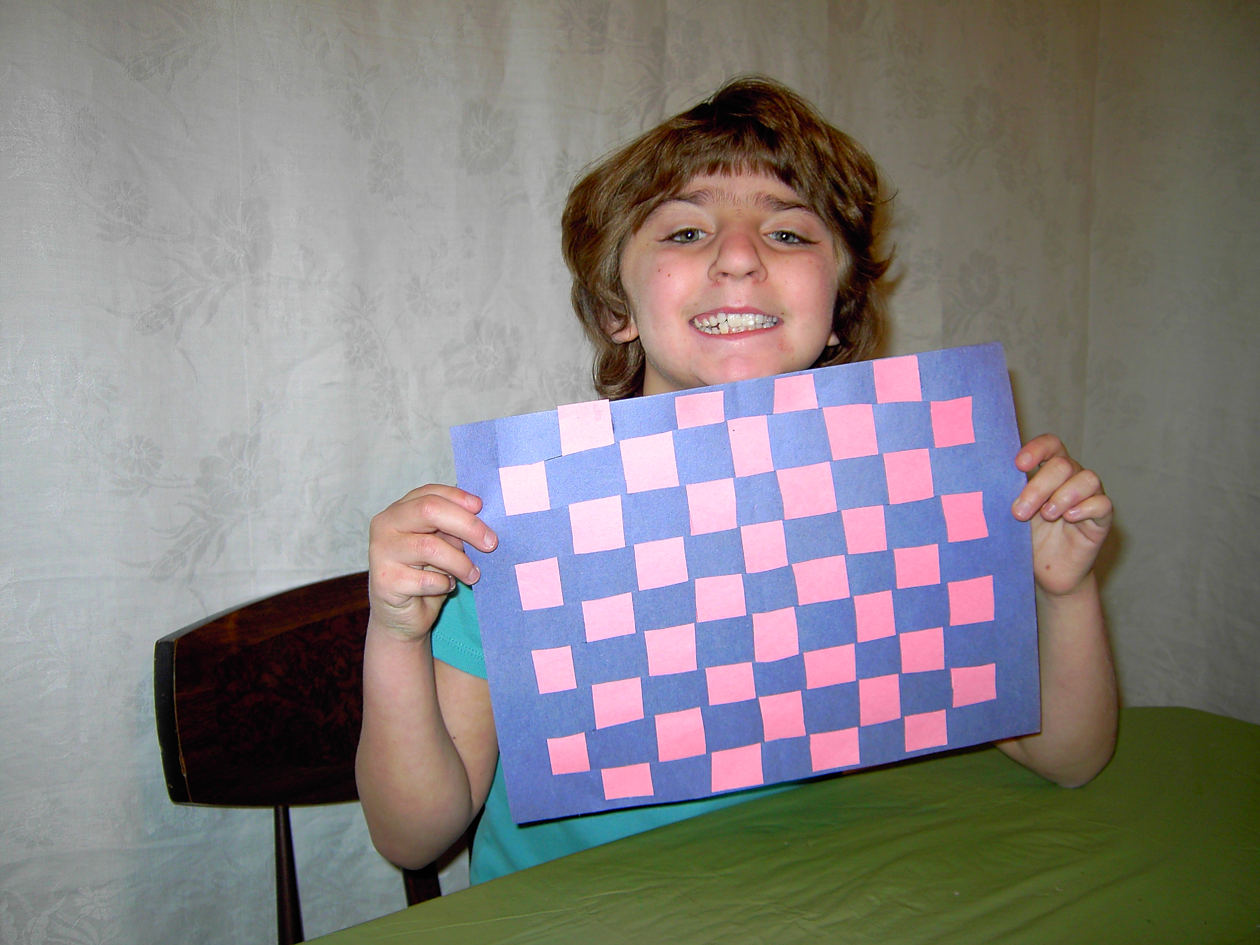 Yesterday we talked about Hades, one of my Greek gods books. A friend of mine, Brady, is a great student and has enjoyed reading all three of the Greek gods books at school. Today I wanted to introduce you to Sophie. She helped me with the Recipe and Craft Guide to Indonesia book (Mitchell Lane 2010). In fact, Sophie is one of 15 students photographed for the book. The book contains 10 recipes and 10 crafts reflective of the country of Indonesia. Weaving is a popular craft of Indonesia so Sophie and I worked on a fun project that anyone can make with construction and a pair of scissors. This turned into a pretty placemat after we covered it with clear plastic. You could also laminate it. For an extra-special look try cutting a highly-decorated magazine photo into strips and weaving them into another piece of paper. That would create an interesting effect!