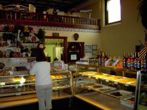 Or you can multi-task across the street at The Gathering House, a combination antique shop and bakery. In addition to large luscious-looking homemade cookies that sell for a mere 50 cents, the menu for Swiss Days will feature Swiss Schuetzie Salad for $4.25 (Schuetzie is a hot bacon dressing poured over lettuce). Place your order, then shop the store’s two floors of antiques and specialty items while you wait.