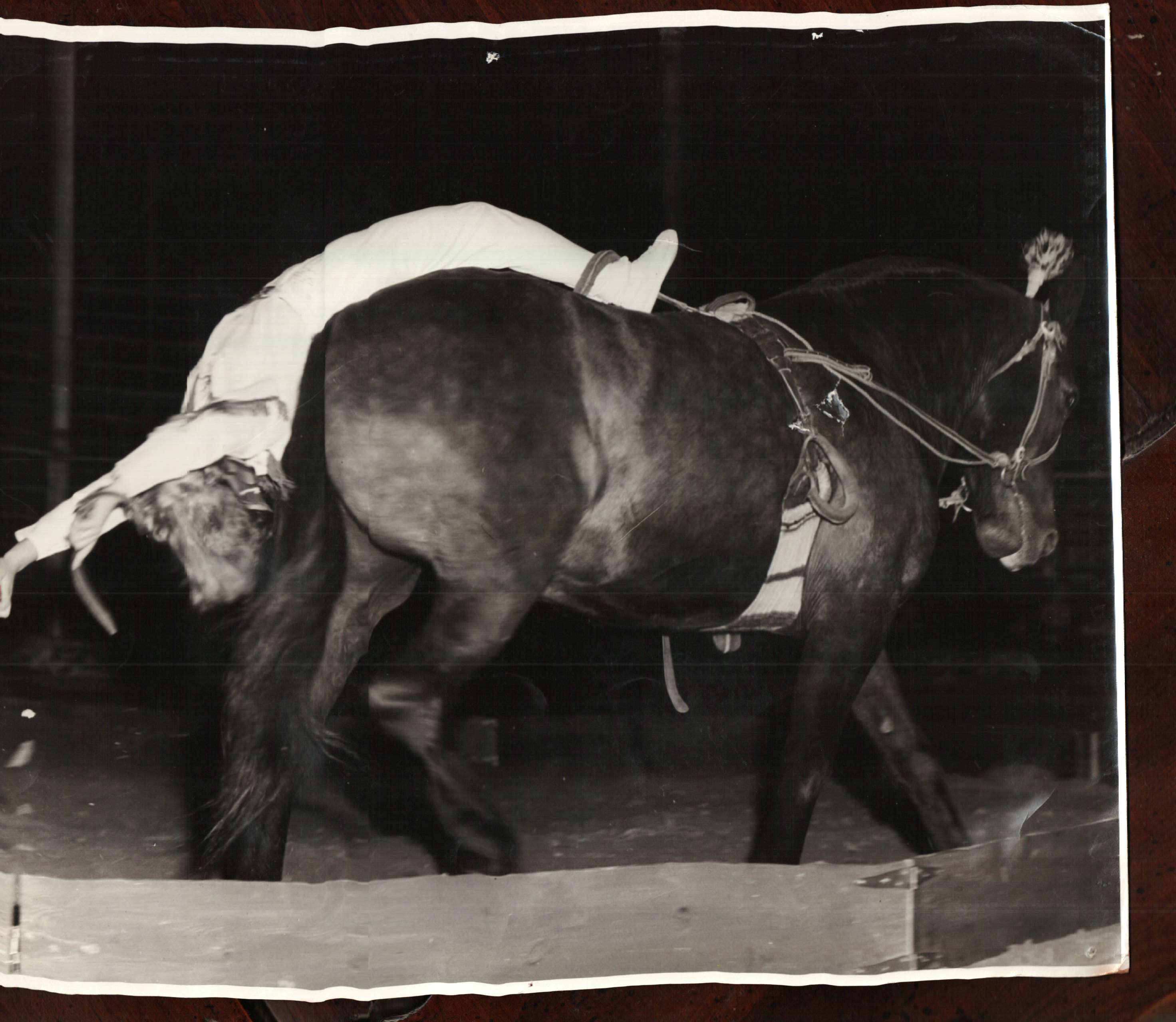At the end of each show Delores somersaulted off of Sonny’s back, then she and Sonny bowed. Delores was paid $50 for each rodeo performance. “That was good money for a teenager in the 1950s,” she said.