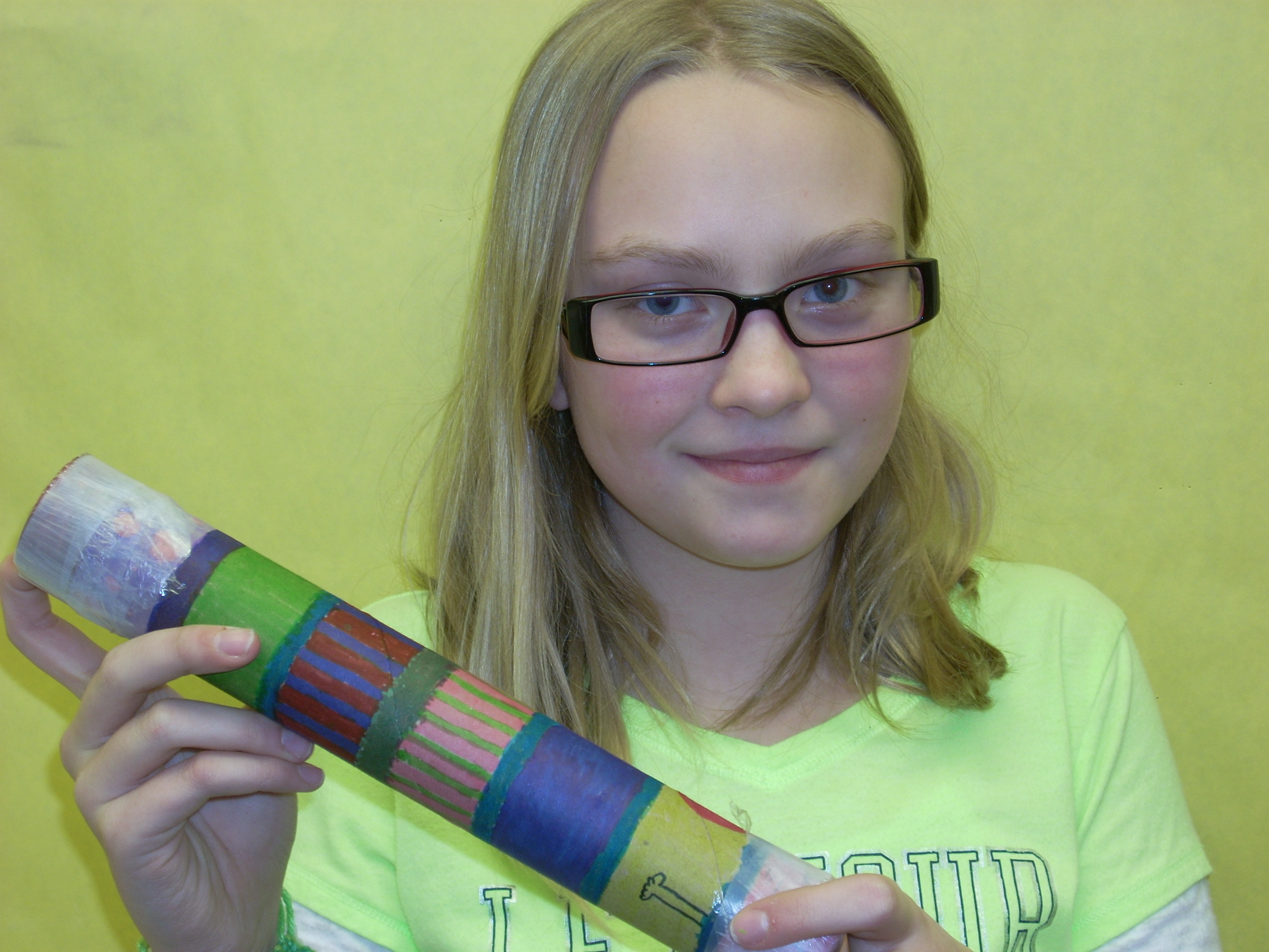 My friend Faith made a rain stick using directions from my book, Recipe and Craft Guide to Indonesia (Mitchell Lane Publishing). It is a simple craft using a paper towel roll and markers to decorate the outside with crazy happy colors and designs.