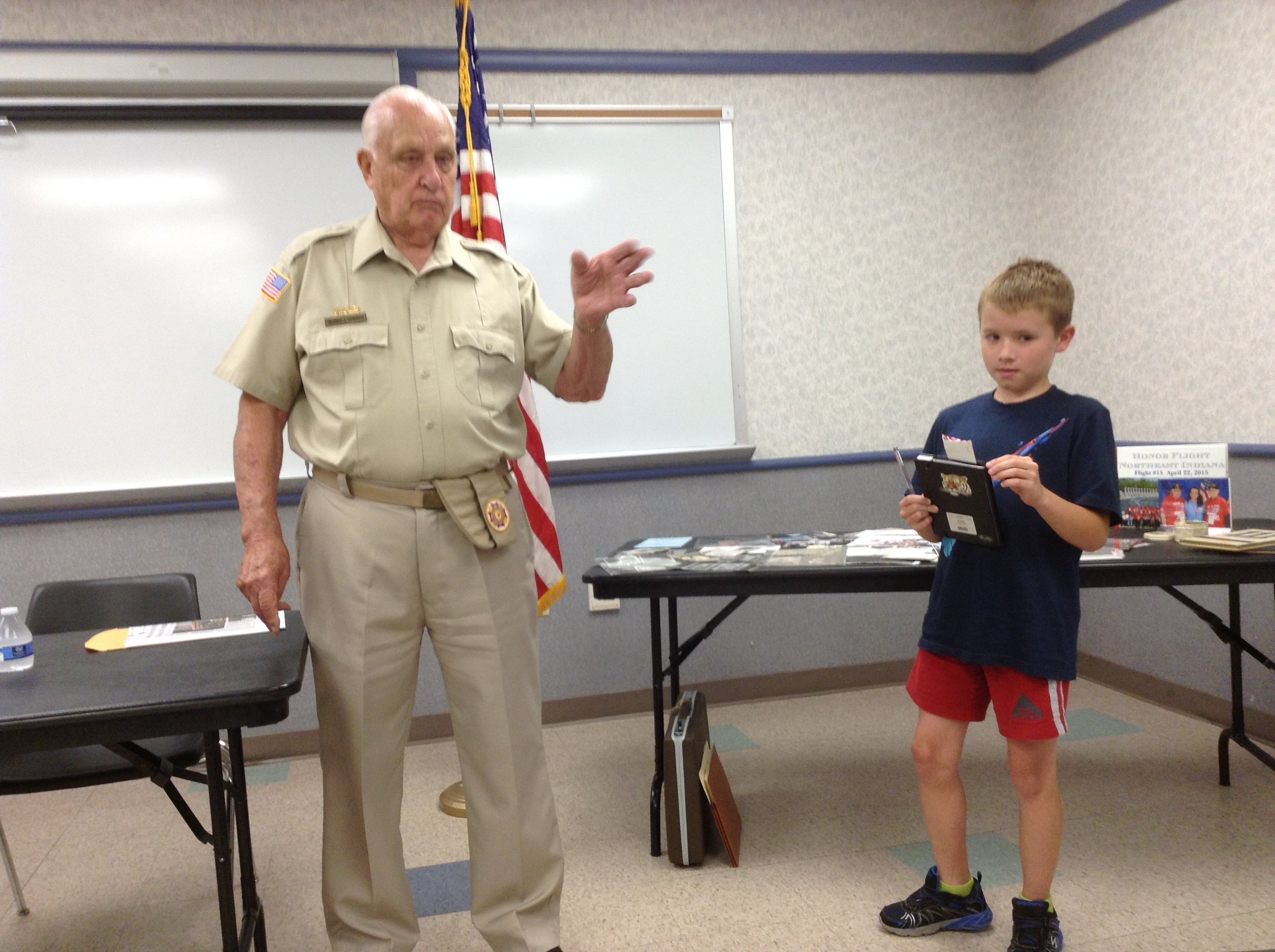 The meeting began at 6pm. Al Edwards, a Navy veteran whom I had interviewed for the News-Sentinel WWII stories. This column has run every other Monday since February. Al served as our guest of honor. We had an audience of all ages, including one little guy who was around age 10!