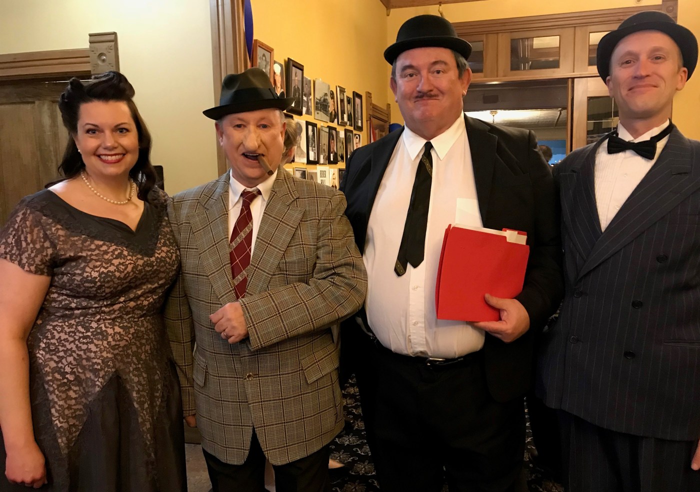 Re-enactors: Charlie Chaplin, (Peggie Lee in back), Shirley Temple, Rosie the Riveter, Ann Miller.