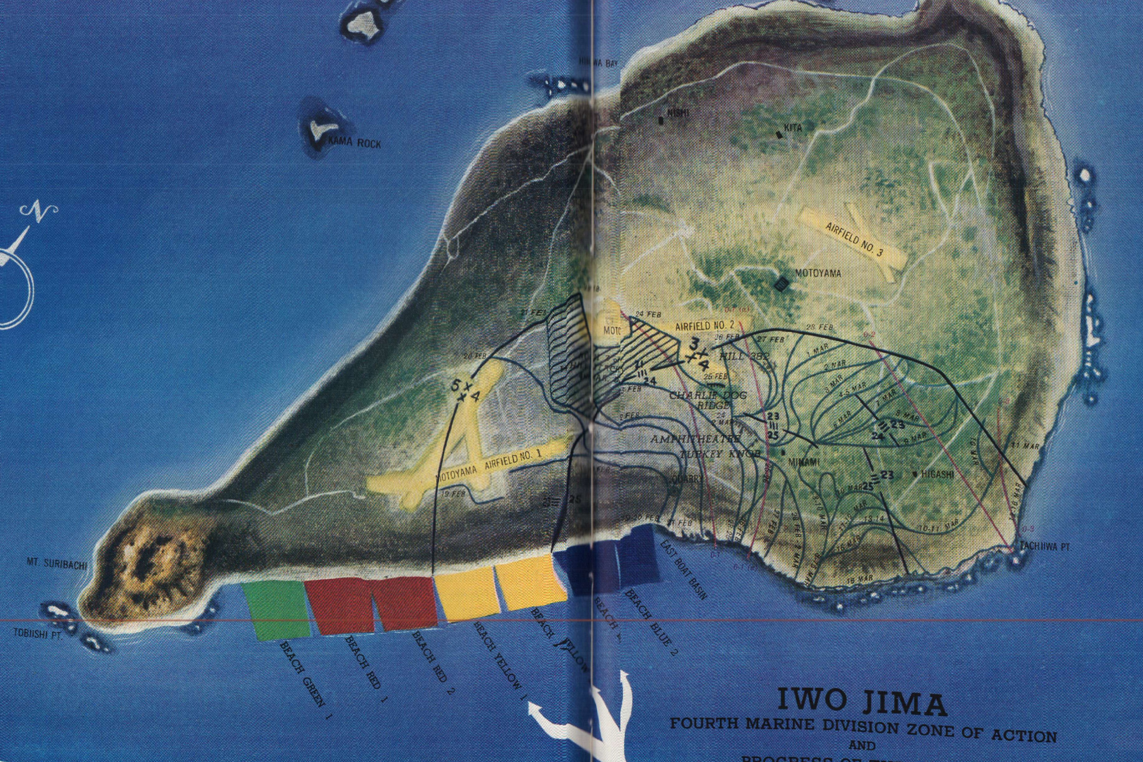 Nicknamed ‘Pork Chop’ by Allied troops because of its shape, Iwo Jima was part of an island-hopping strategy by the Allies. “Our planes needed to land there to refuel on their way to Japan for an invasion,” said Corricelli.