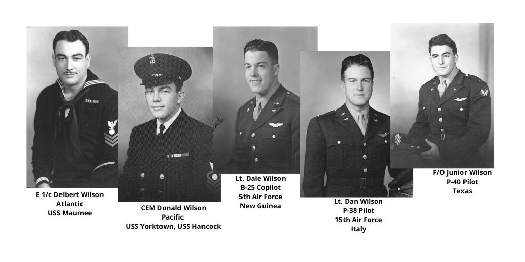 Even before Pearl Harbor had been attacked, one son of Clabe and Leora Wilson was already in the U.S. Navy. Their four other sons, two still in high school, worked as tenant farmers with their father near Minburn until war broke out. One by one, they too left to serve their country. Two were Navymen. The three younger ones became Army pilots.