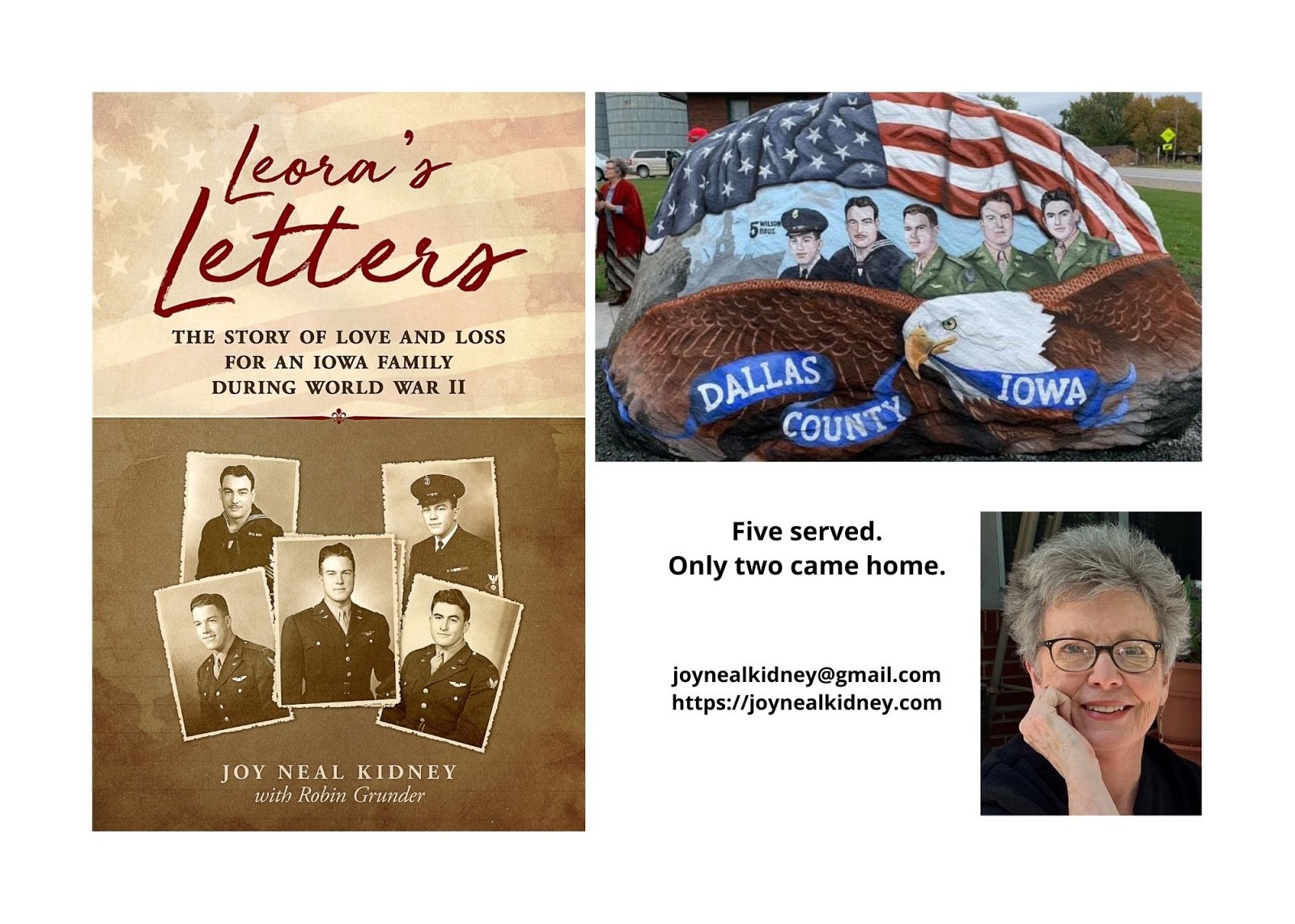 I’m delighted to feature a guest host today. Joy Neal Kidney is the author of Leora’s Letters: The Story of Love and Loss for an Iowa Family During World War II.