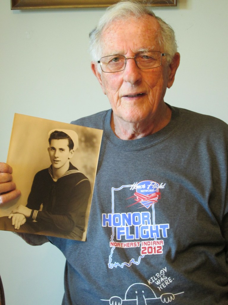 Conrad wears his T-shirt from his trip to Washington DC with Honor Flight of Northeast Indiana.