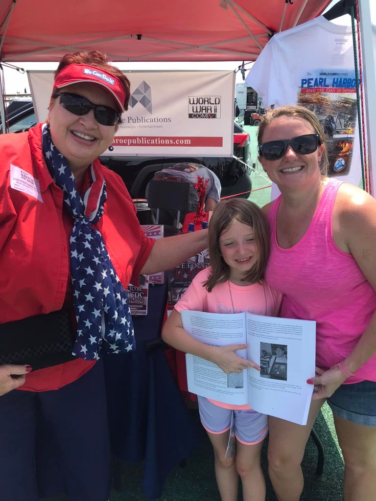 In addition, I handed every person who came to the booth a business card and said that I was available as an experienced speaker for virtual patriotic talks. My talk about women I’ve interviewed who served in the US Army, Navy, Coast Guard and Women’s Air Service Pilots is especially popular.