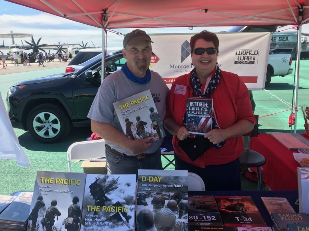 Jay Wertz and I stand at our booth filled with WWII books we’ve authored.