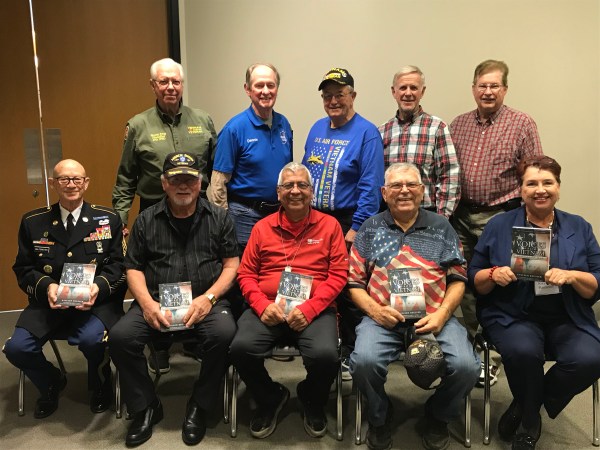 Vets front: Fritz Bultemeyer (Army), Randy Harnish (Army), Jose Huerta (Navy), Rod Maller (Army), me. Back: John Senac, Jr. (Army), Dennis Covert (Navy), Lanny Idle (Air Force), Mike Dean (Army), John Reusser-- Vietnam War-era vet/ husband of author (Air Force). This past weekend we celebrated the second book launch for my latest book, Voices From... Continue Reading →