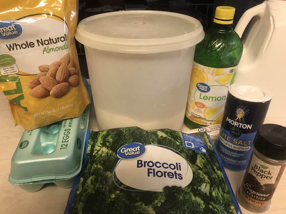 - Two 12-oz. bags of broccoli steamed in the bag worked well.