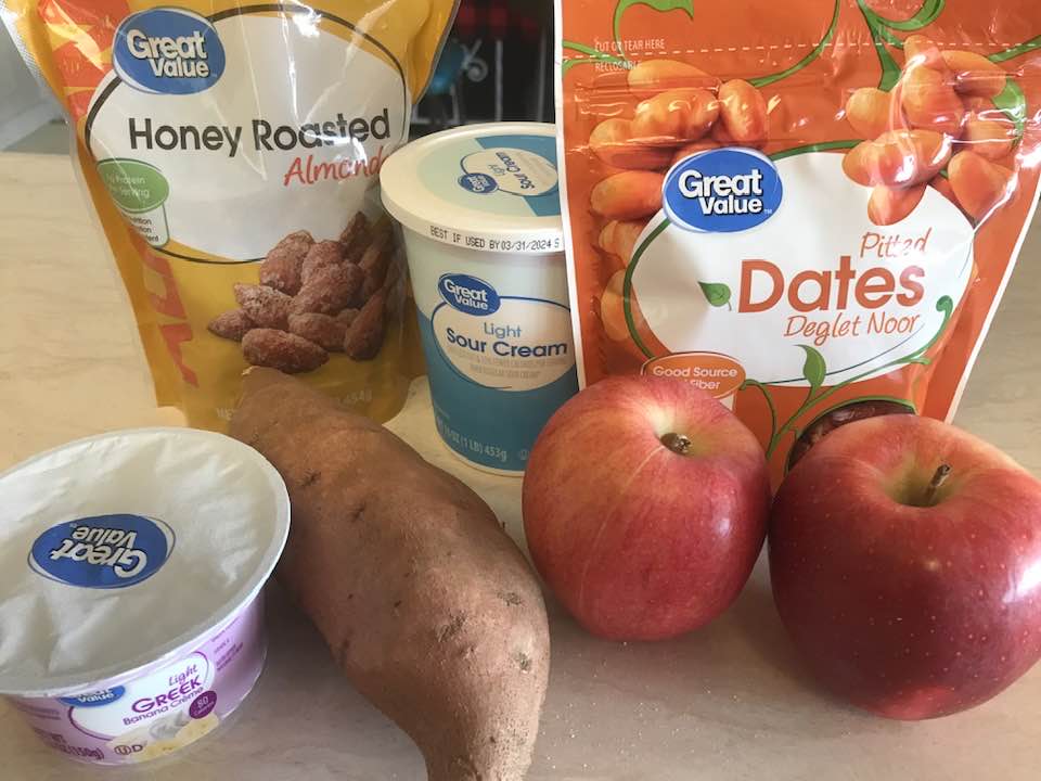 - The recipe only calls for the sweet potato to be ‘grated.’ I didn’t want to eat it raw so I used a vegetable peeler to take off the skin, cubed it and steamed it for 10 minutes in the microwave. It was pretty soft so if you prefer a firmer fruit, then leave it in the microwave for a shorter time.