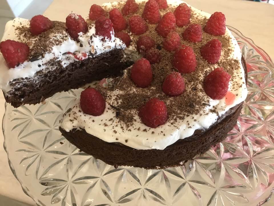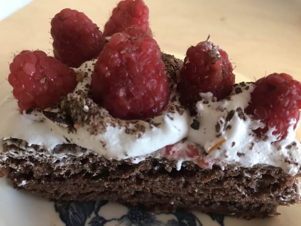 - Our budget was stretched this week so I made this cake without chopped nuts, additional malted milk powder frosting, and the chocolate covered buttercream wafers. It turned out fine with my adding a light cover of whipped topping and red raspberries already on hand. If adding fruit, keep refrigerated.