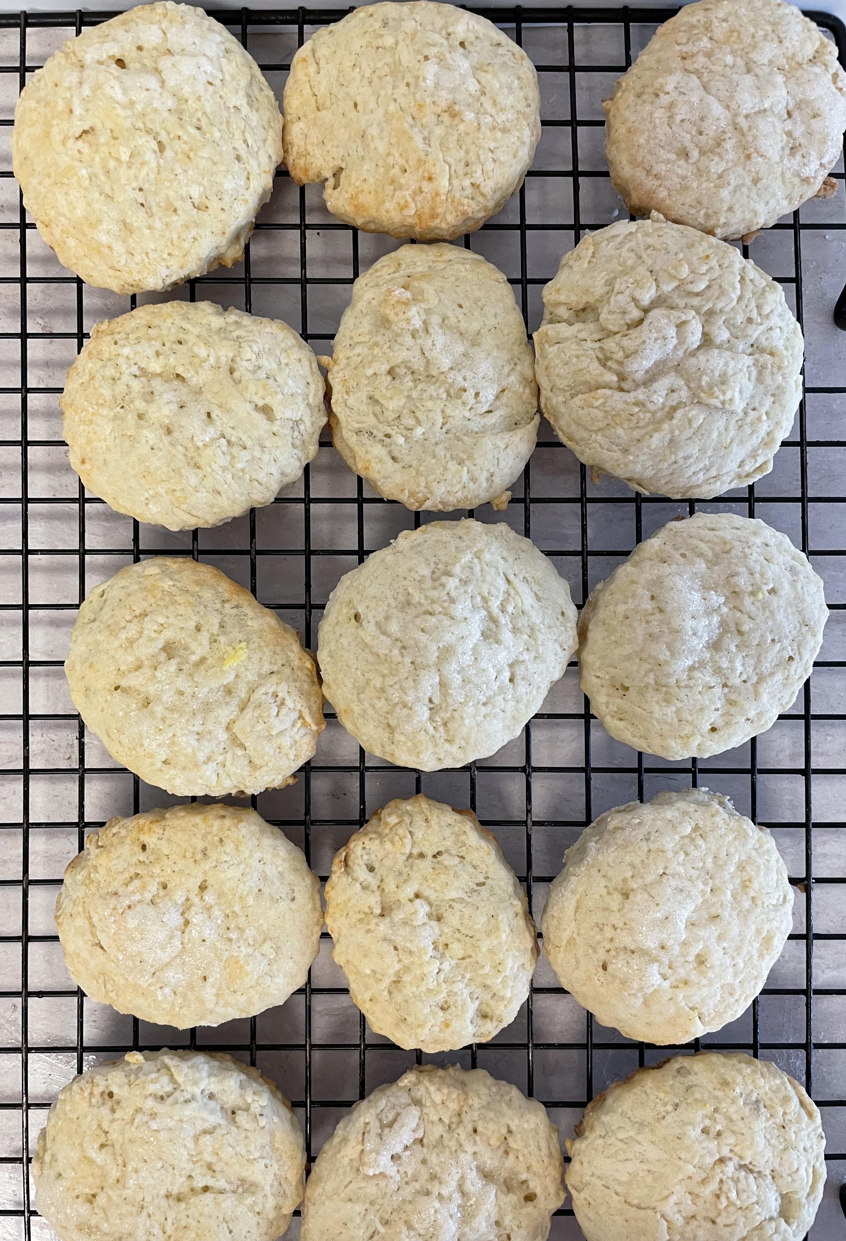I didn’t have a 3-inch biscuit cutter as the recipe called for. Instead, I used an antique 2-inch one I found in a thrift shop.