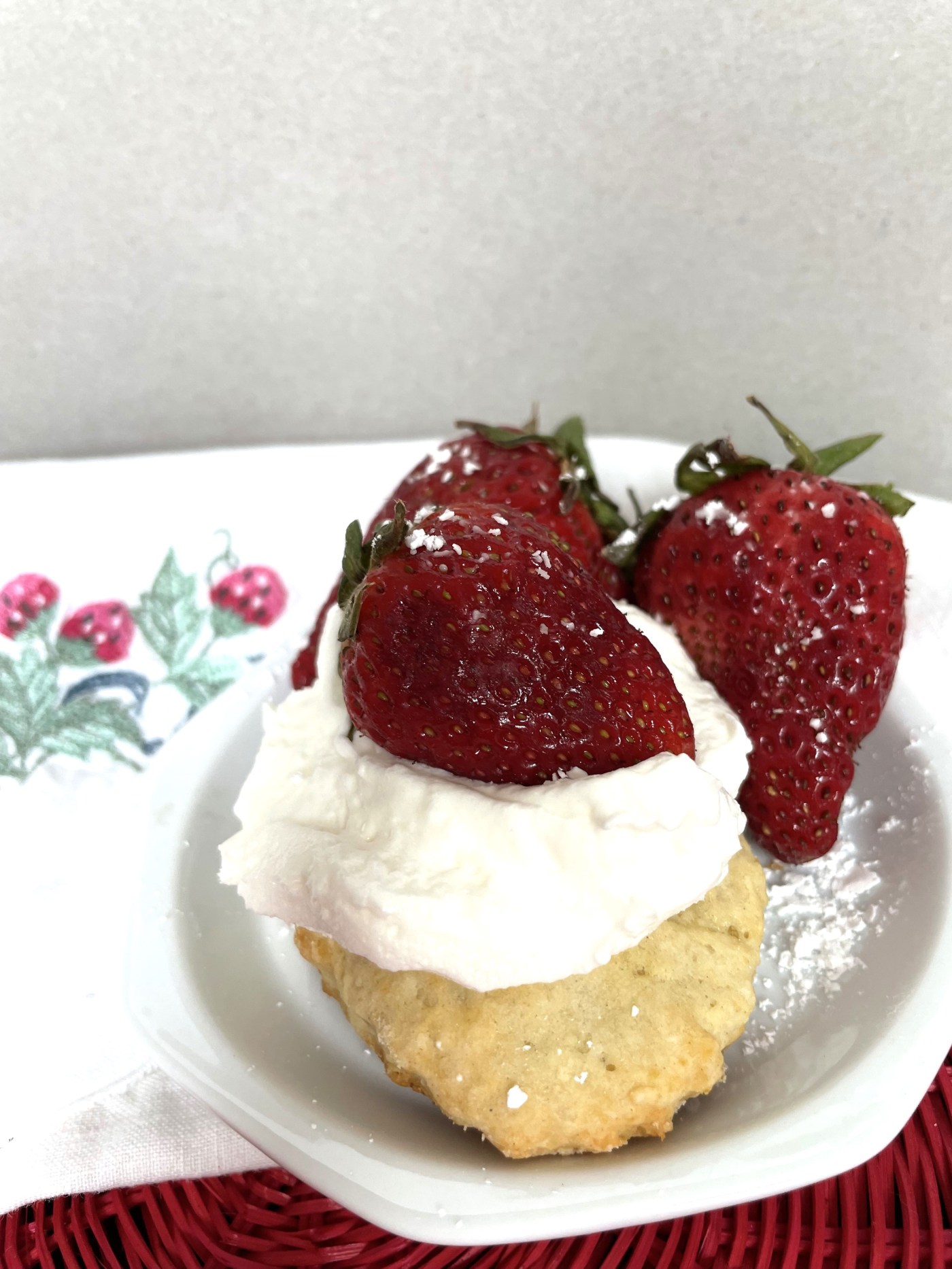 The recipe worked well as a cookie to be eaten with dabs of whipped cream and a slice of strawberry.