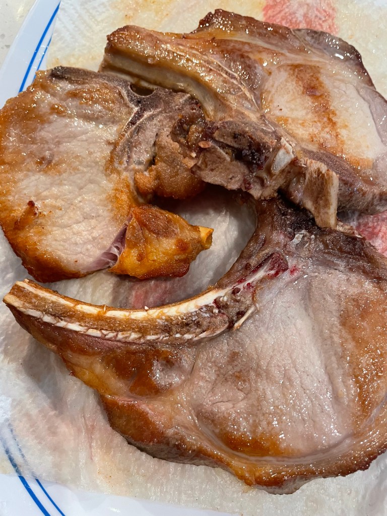 *Seasoned cooks will know this, but if you’re new to frying meat, be careful while browning the chops as the oil can spatter.