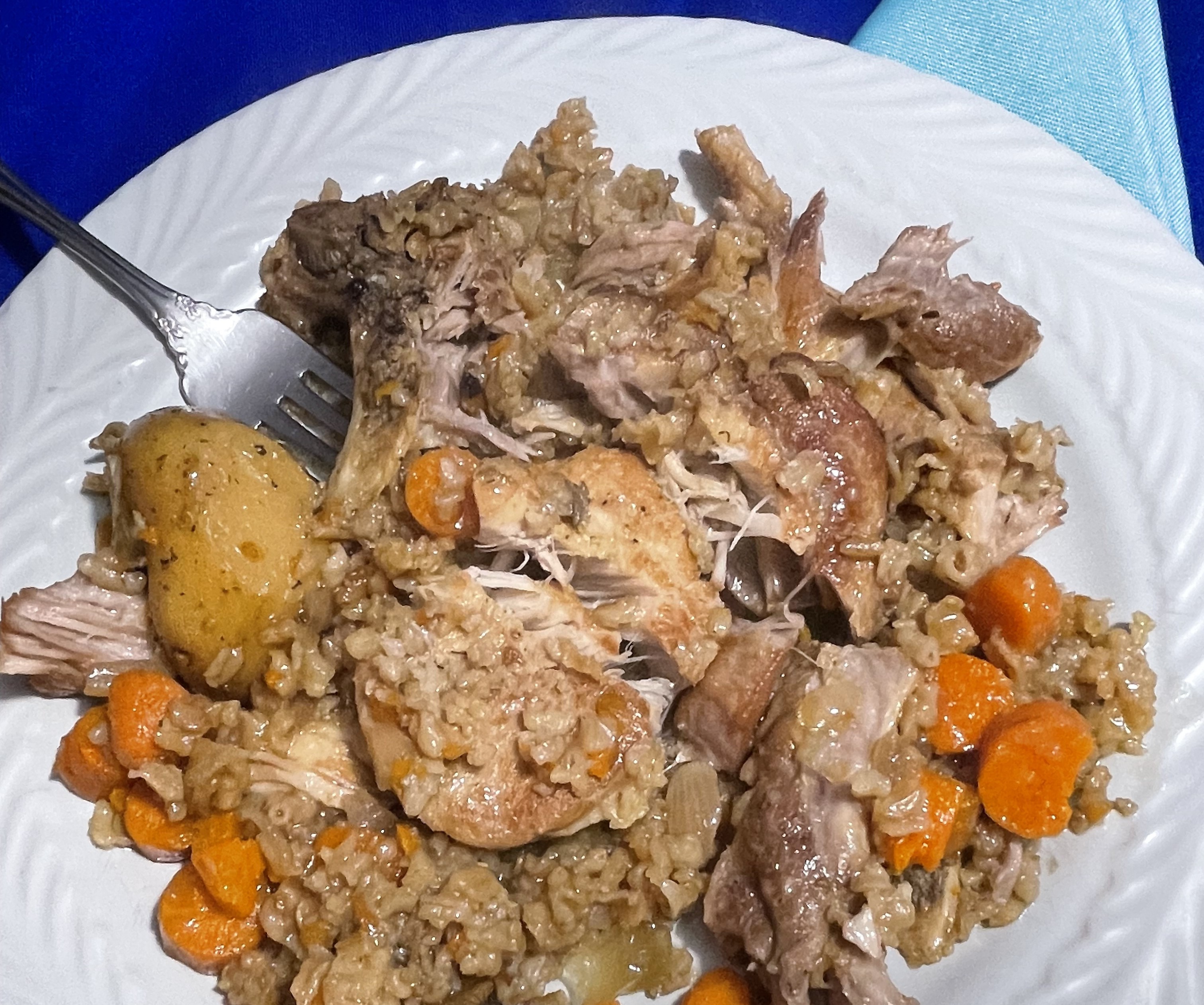 The ingredients were on my pantry shelves. The prep was fairly quick and the result was worth the clean up. The meat literally fell off the bone and the veggies made a nice accompaniment.