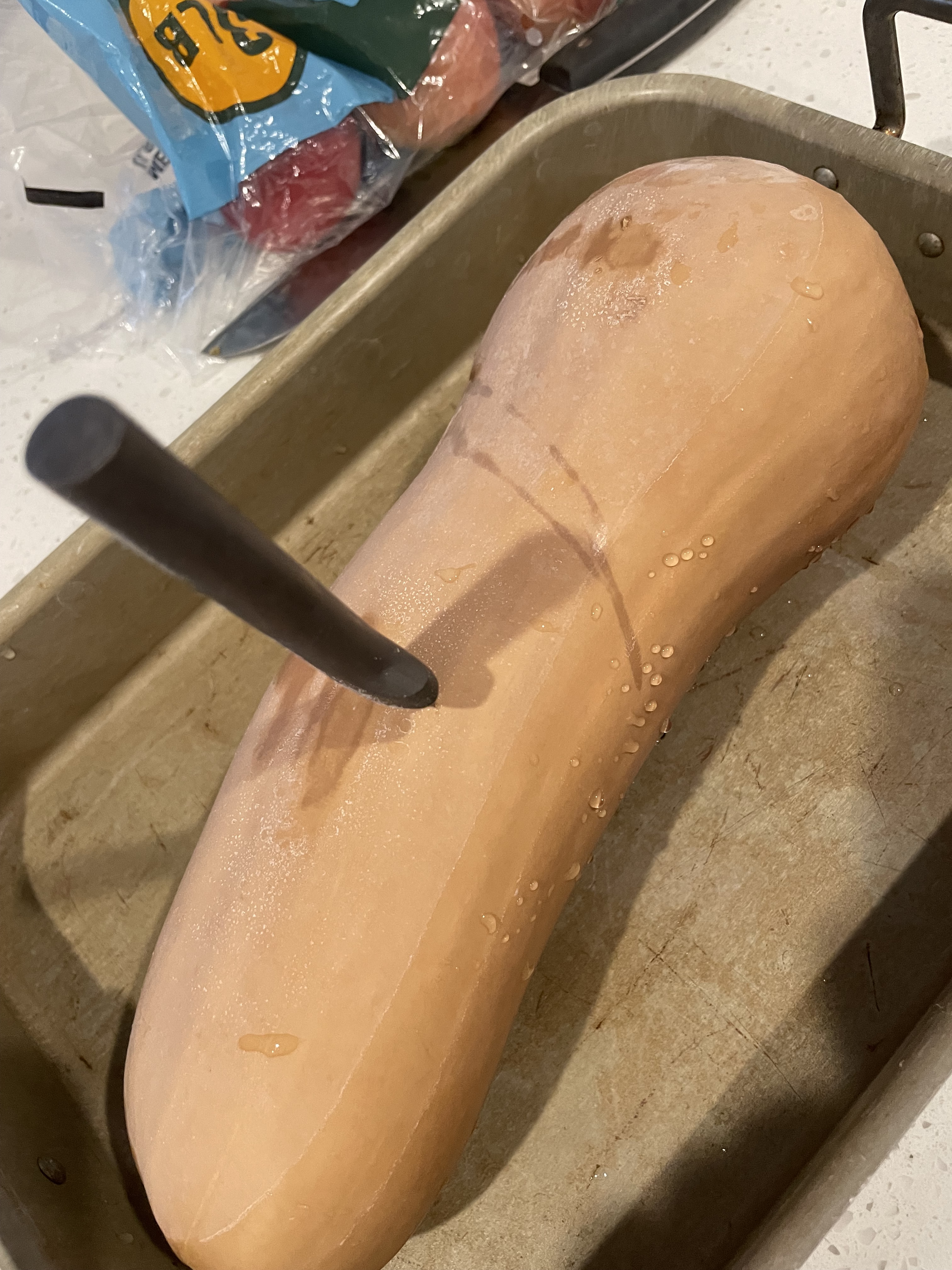*2 packages (10 ounce each) frozen squash, thawed, can be substituted for butternut squash.