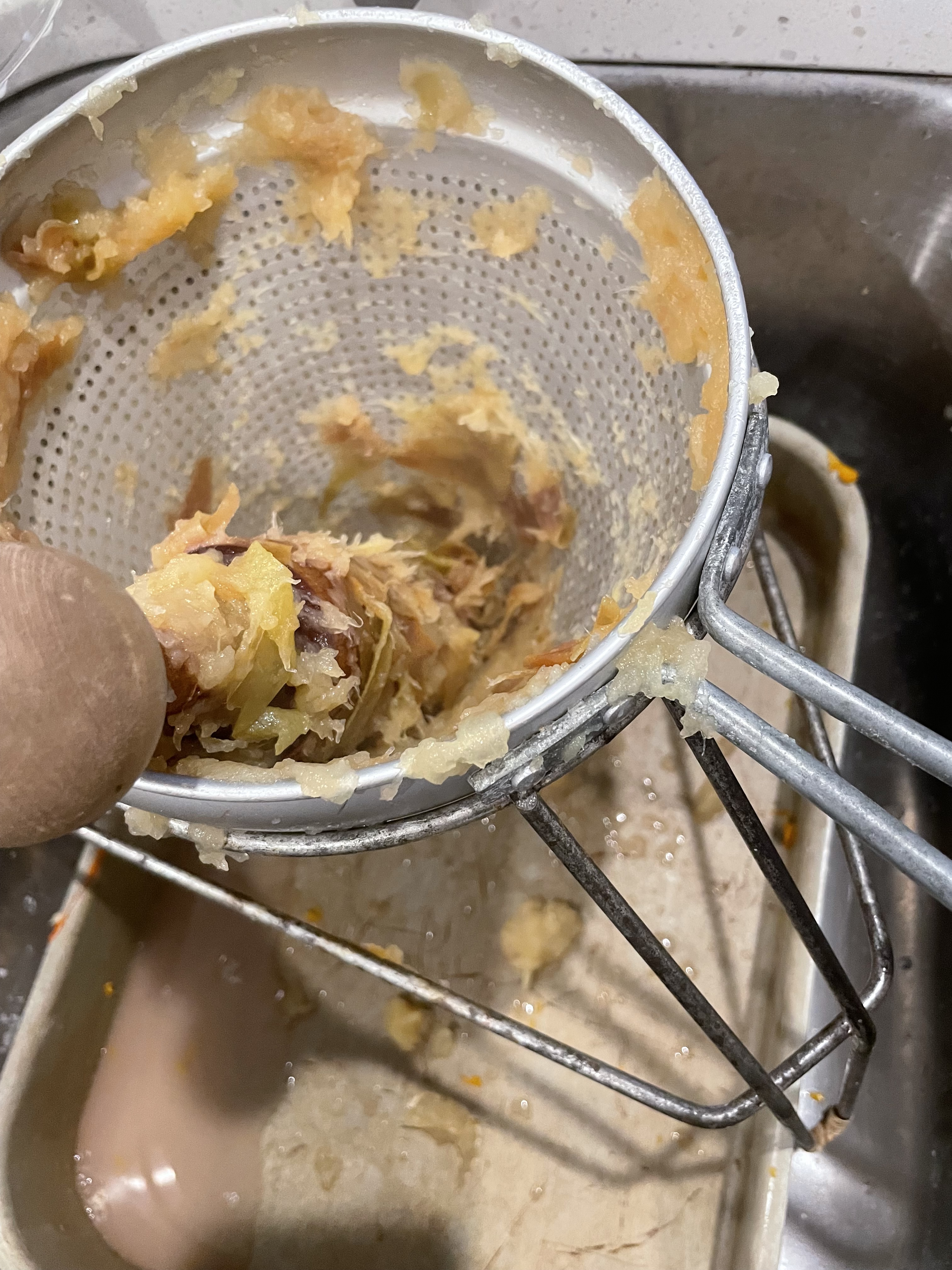 I didn’t have apples so I made applesauce using my old-fashioned colander (I think that’s what it’s called). See My Notes for more information on this process.