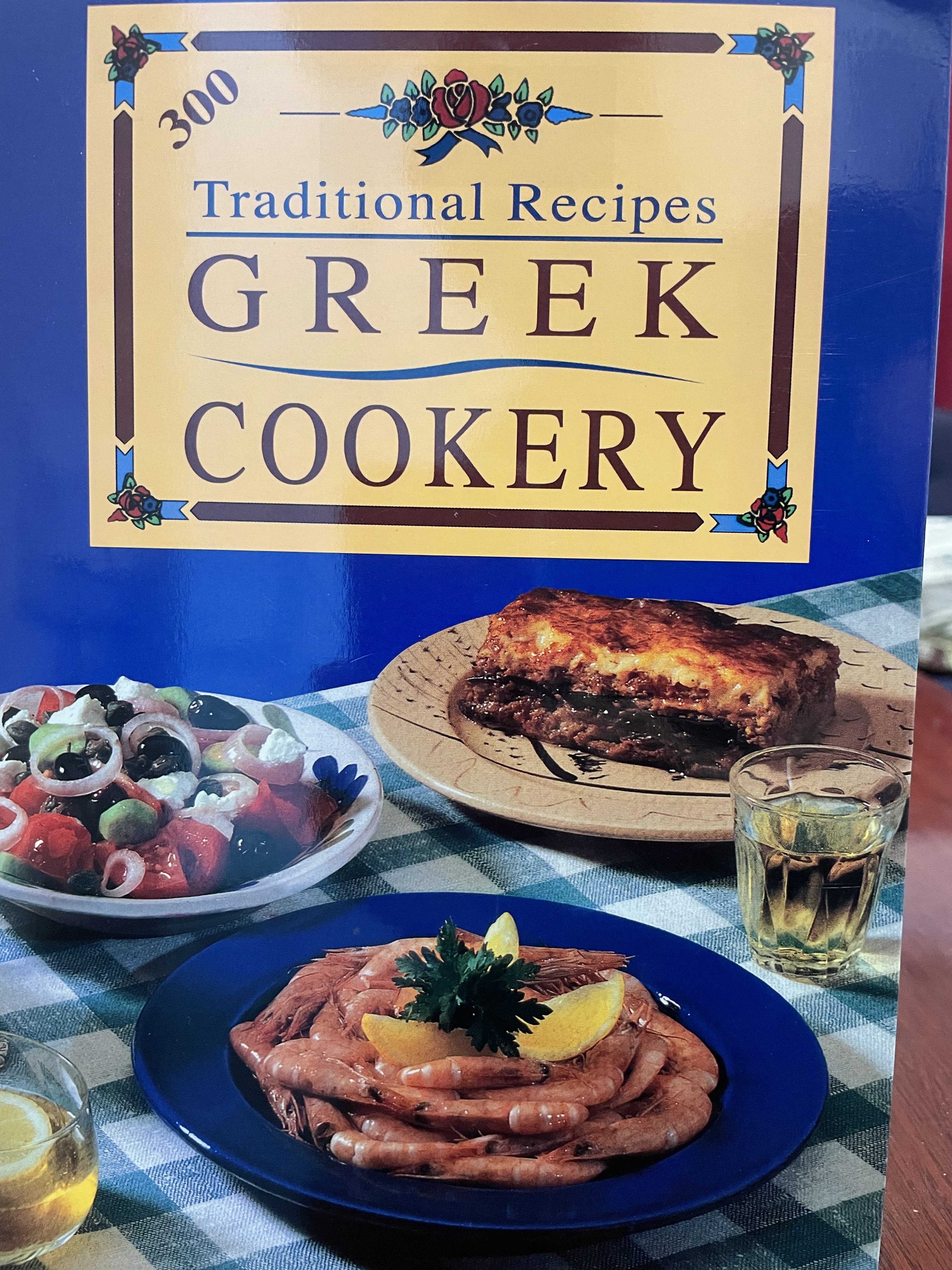 I found the recipe in ‘Traditional Recipes Greek Cookery’ (1997). It contains, according to the front page inset “300 traditional recipes selected with care from the rich heritage of Greek cookery.”