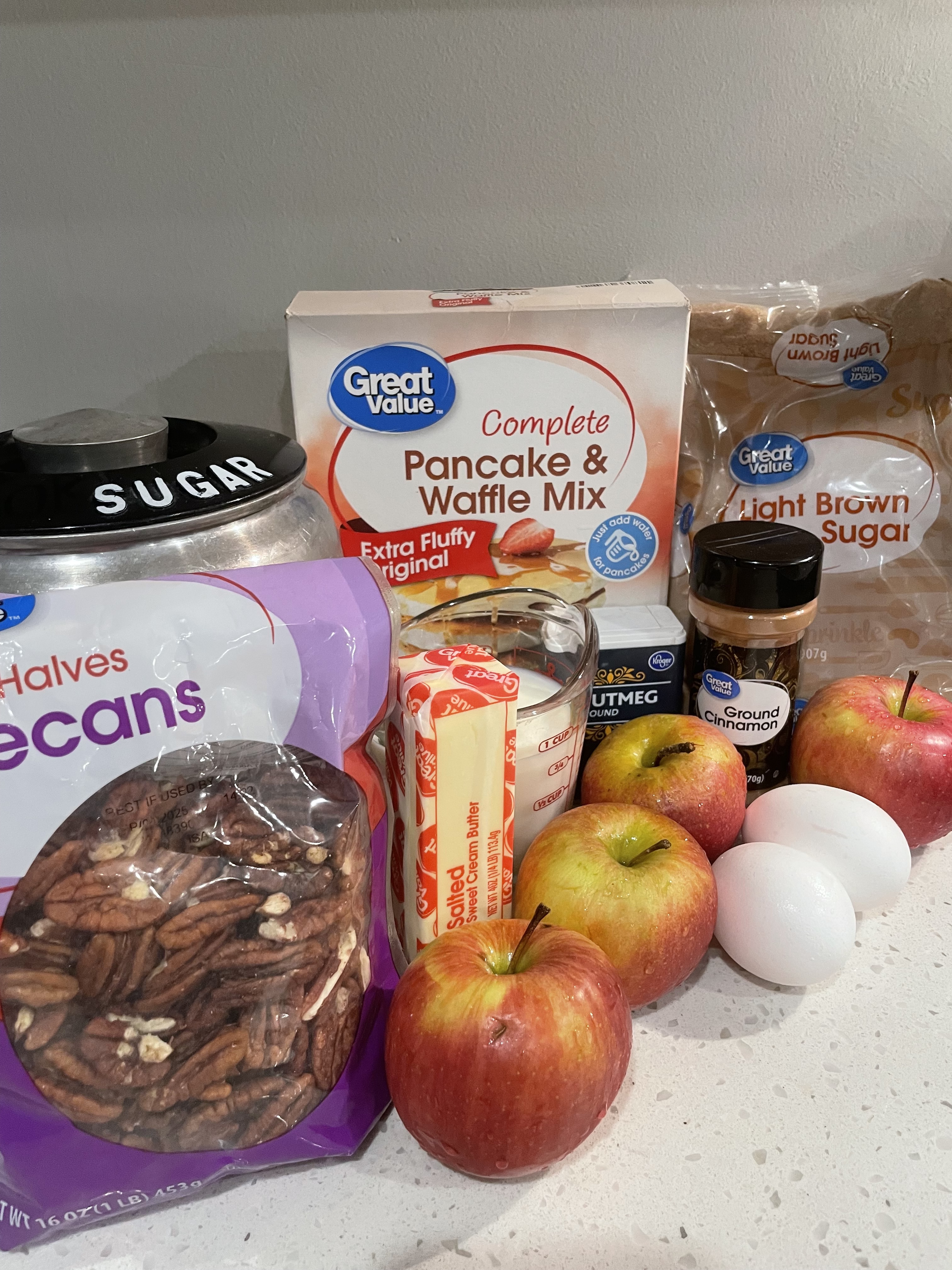 6 cups sliced, pared tart apples (I used Fuji and didn’t pare/peel them)