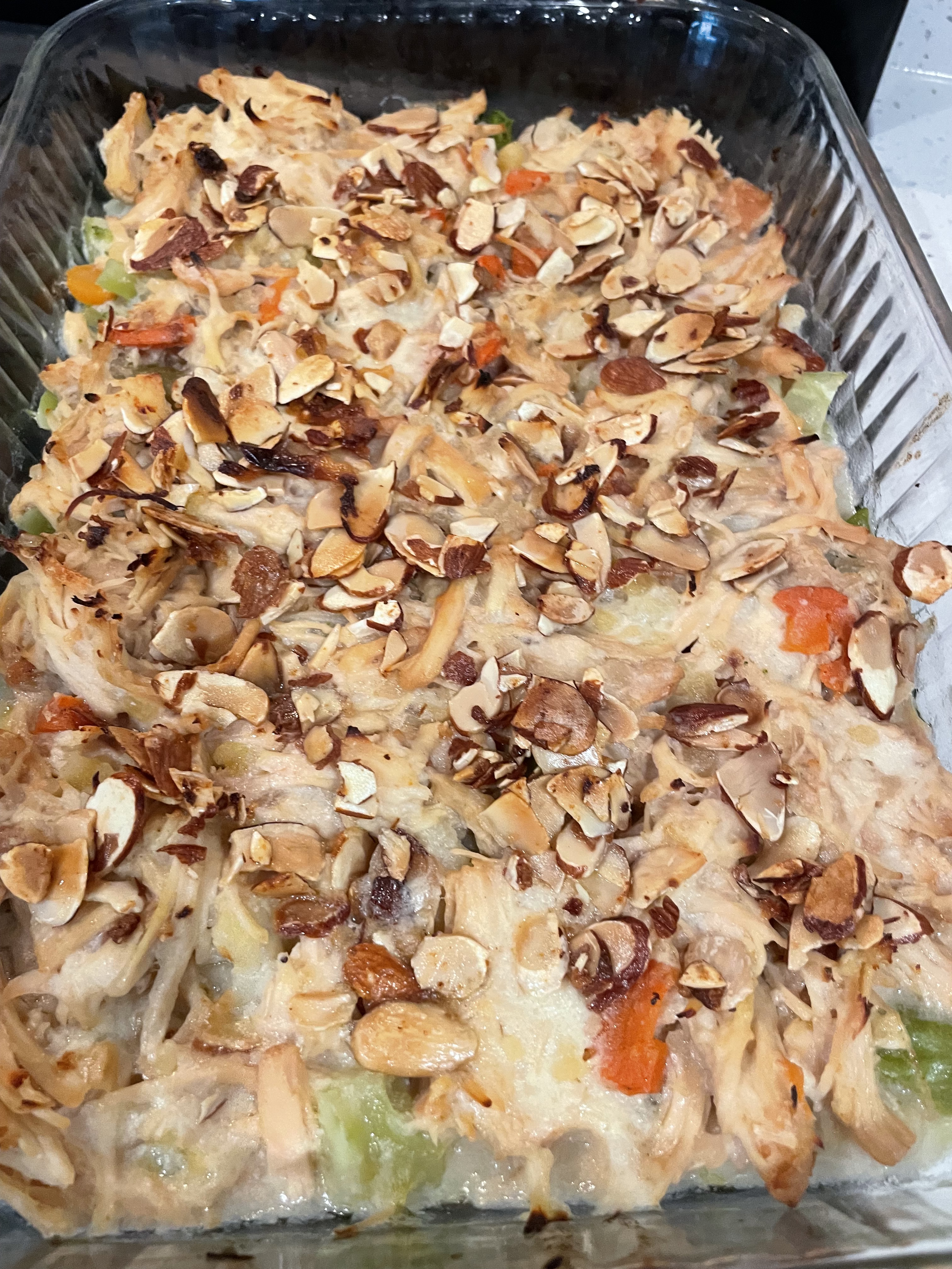 This recipe called Chicken Continental does that in a delicious way. I added cooked carrot slices for more veggie power.