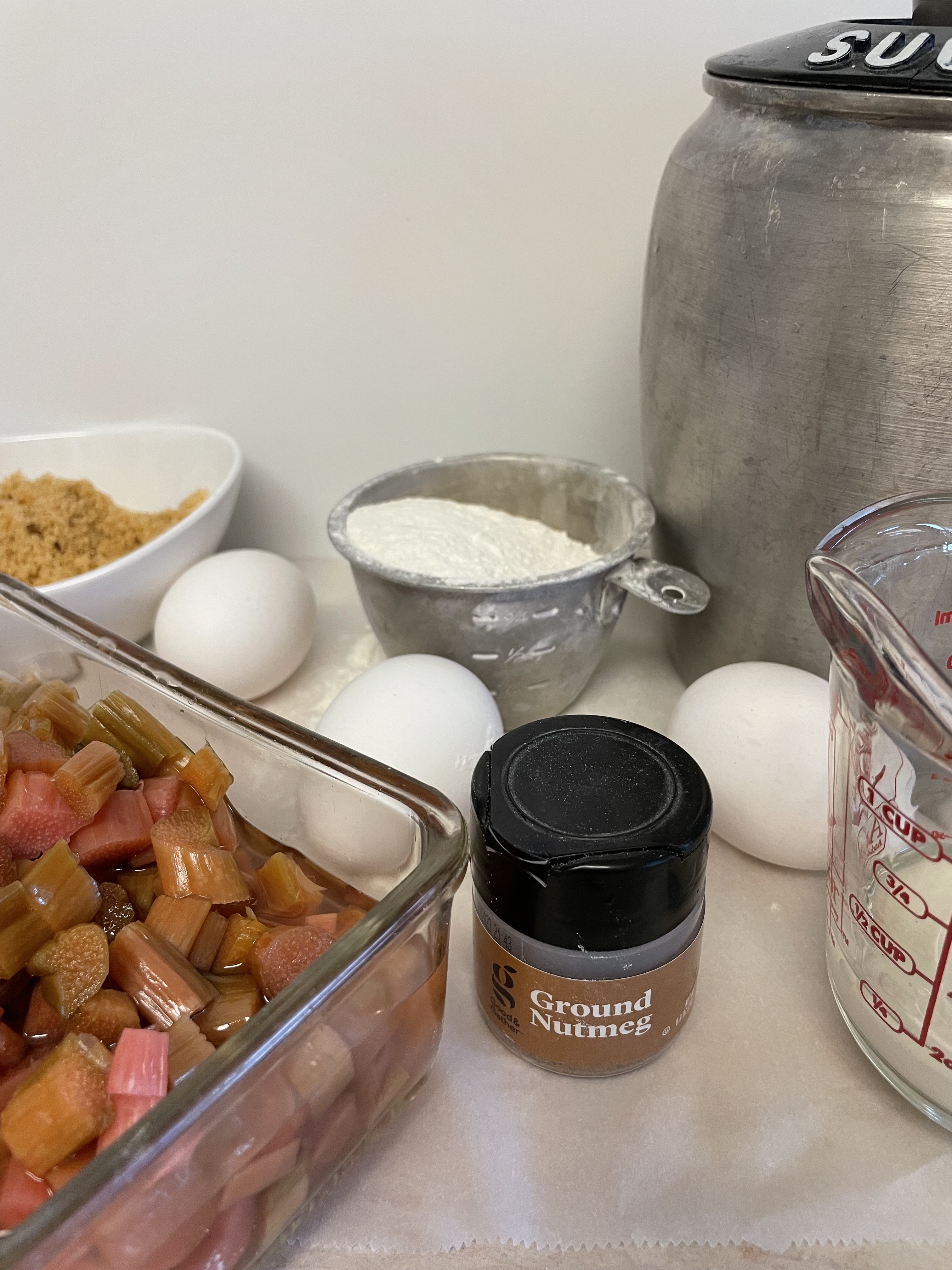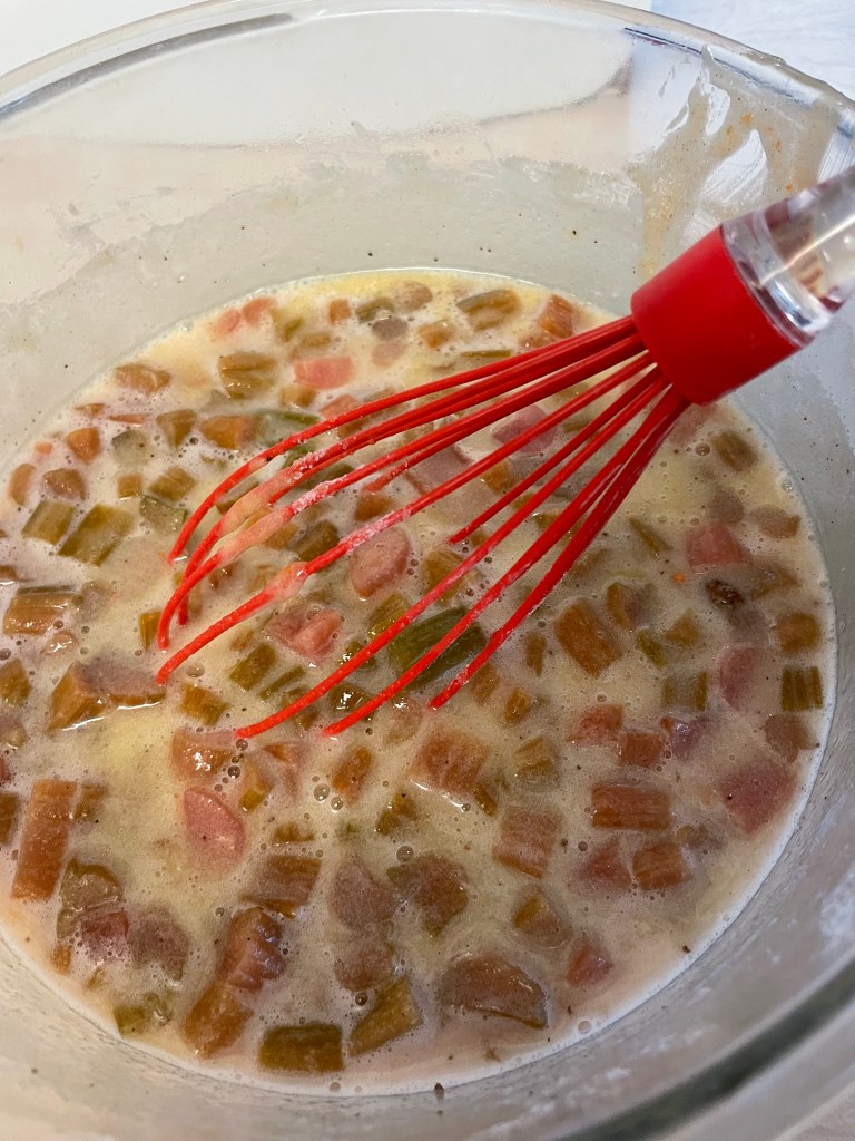 I had made rhubarb desserts throughout our marriage – mostly, crisps and crumbles. My mother-in-law was the queen of Rhubarb Cream Pie. They always turned out so luscious. She made six pies at a time, getting the rhubarb from her garden, to share with other people.