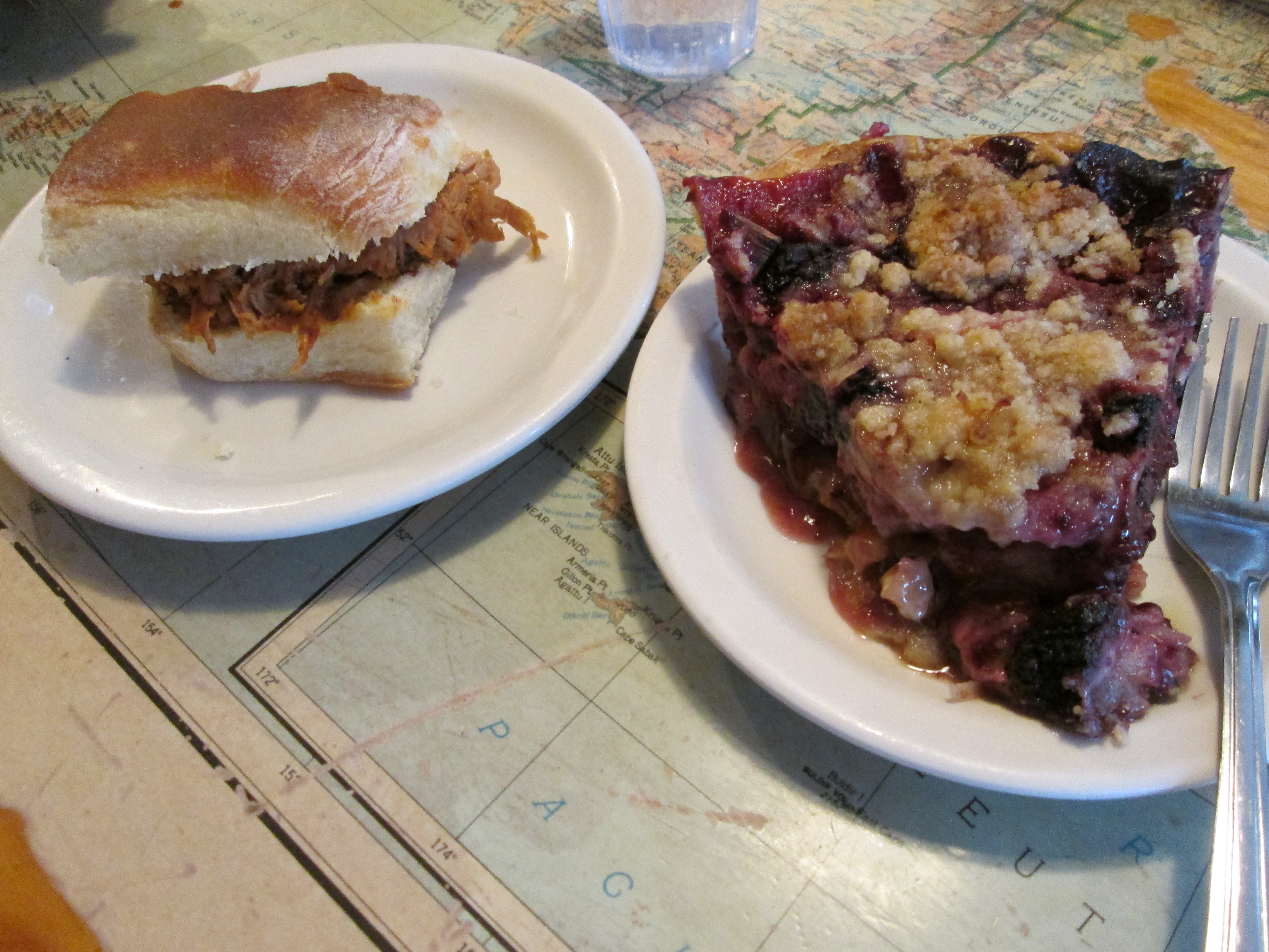 John and I had never heard of Blubarb Pie. The waitress explained that it was a combination of blueberries and rhubarb.