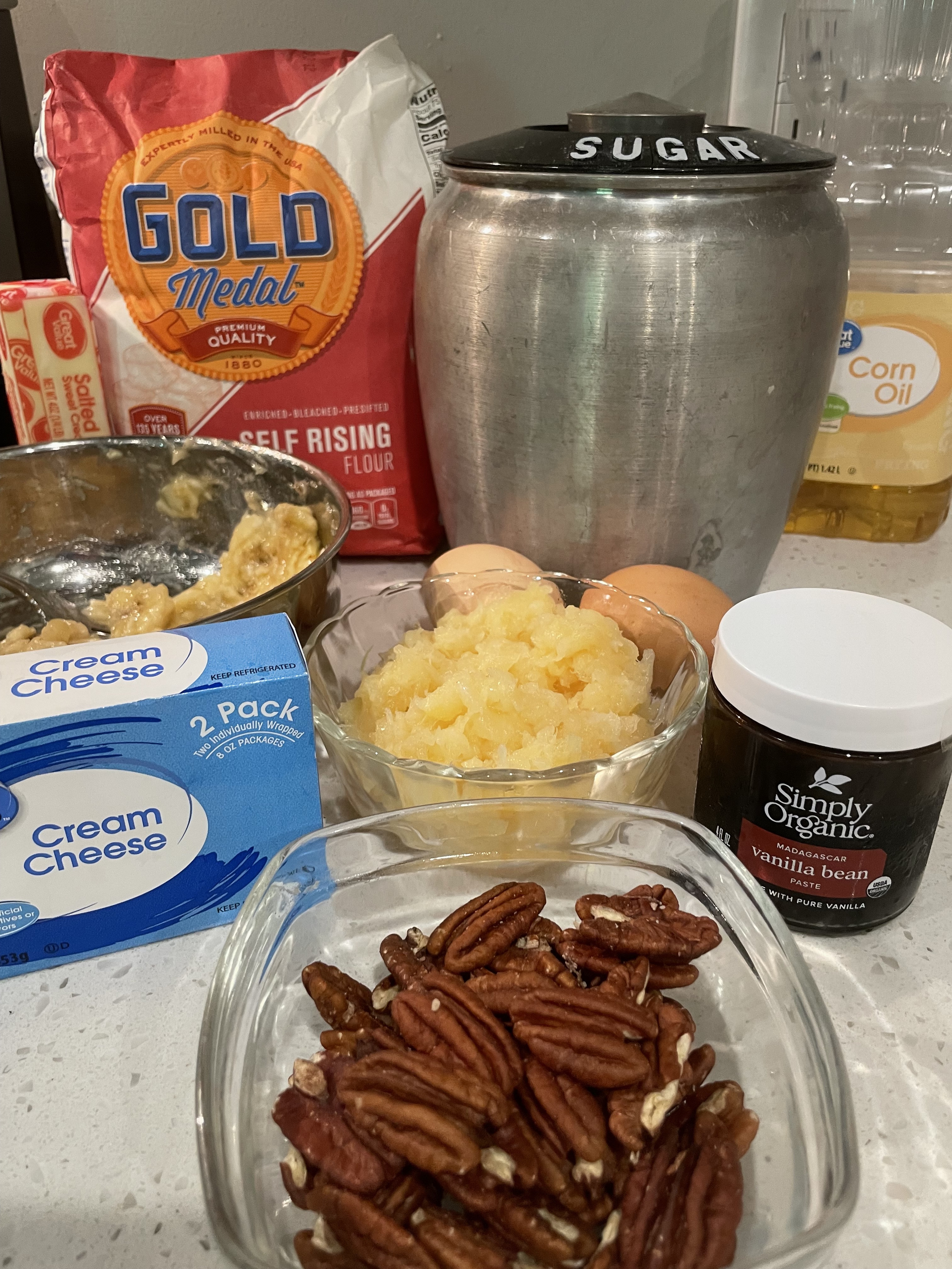 Cool completely before frosting with vanilla cream cheese icing. One cup chopped pecans can be added for garnish.