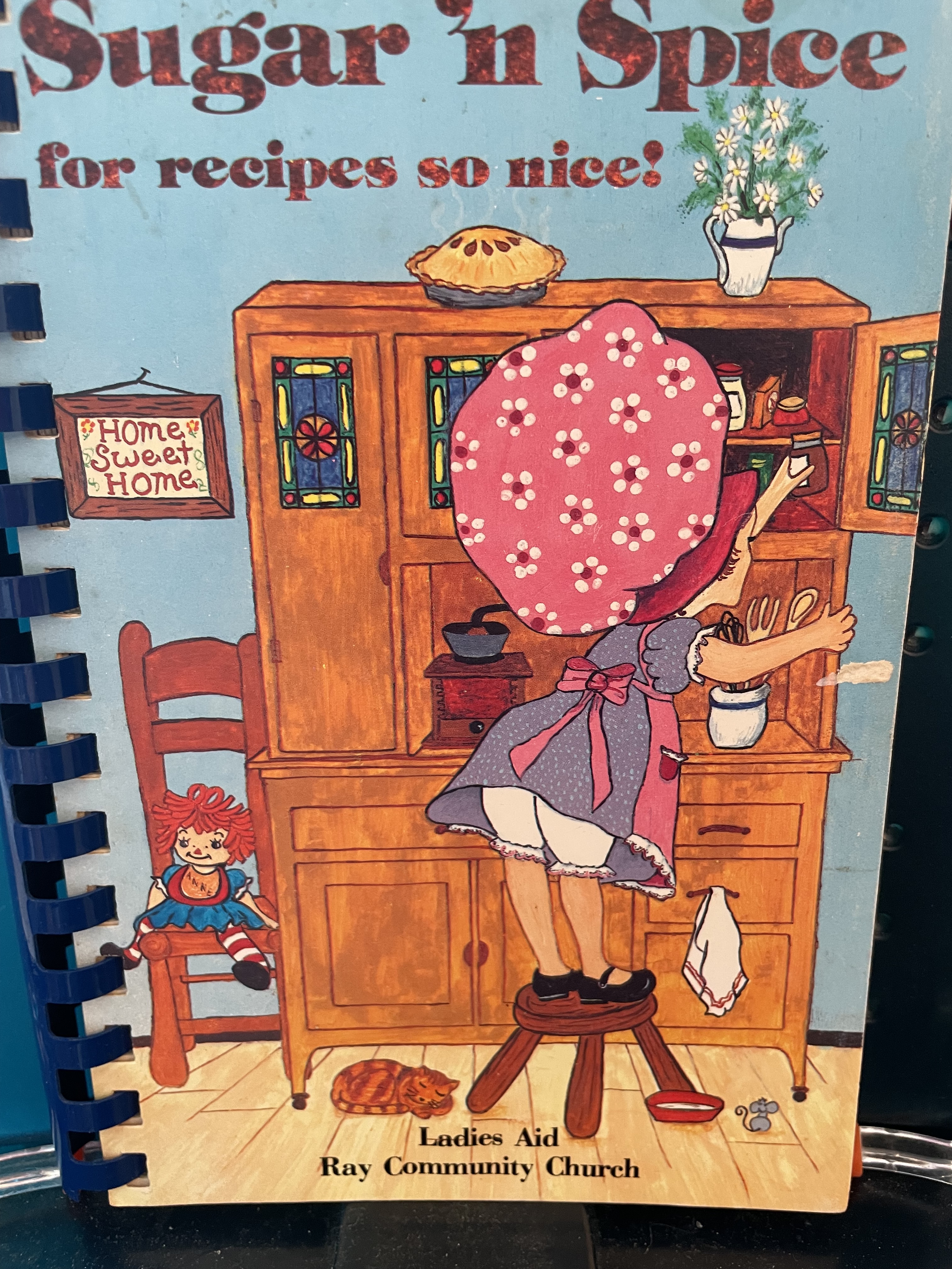 This recipe for Zucchini Bars came from the spiral-bound ‘Sugar ‘n Spice Ladies Aid Cookbook’, published by the Ray Community Church in Ray Indiana (1978).
