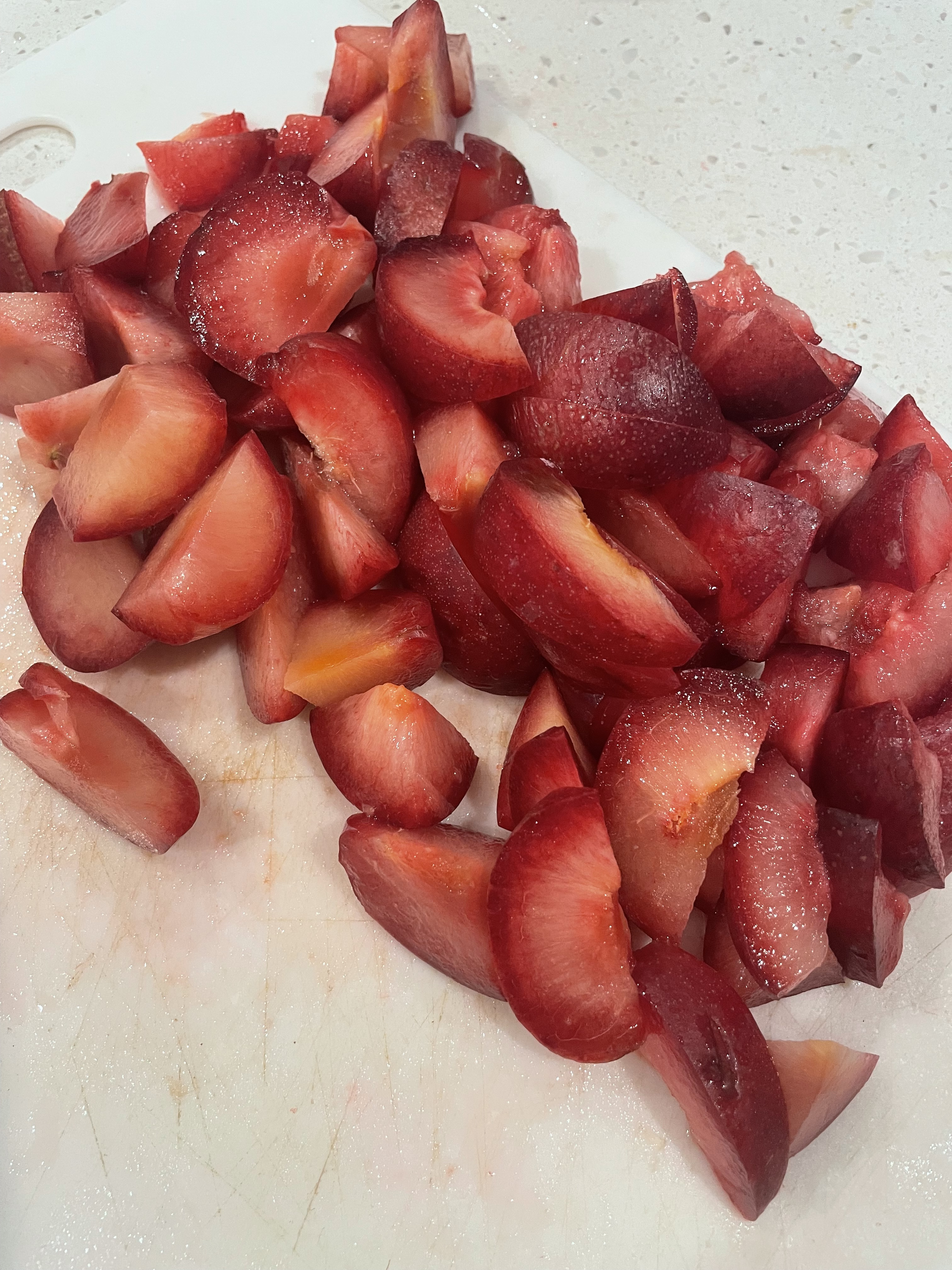 I was not sure I had purchased Italian plums. Looking at photos of them online made me think that was the type. They were dark purple on the outside and a deep juicy red inside.