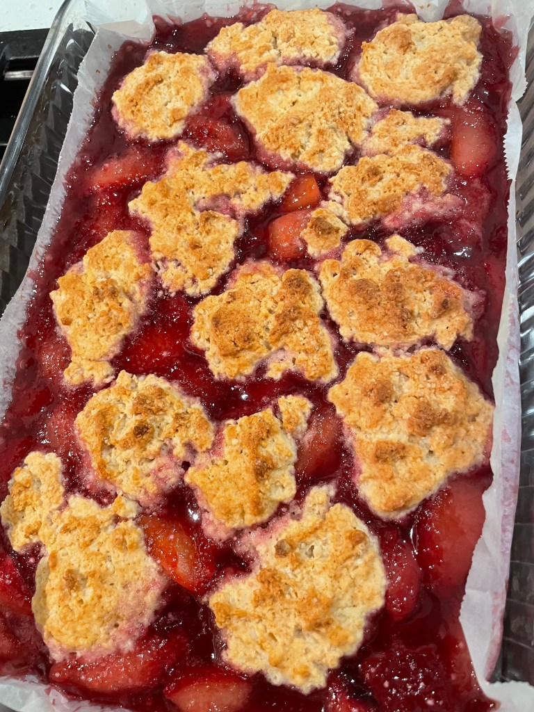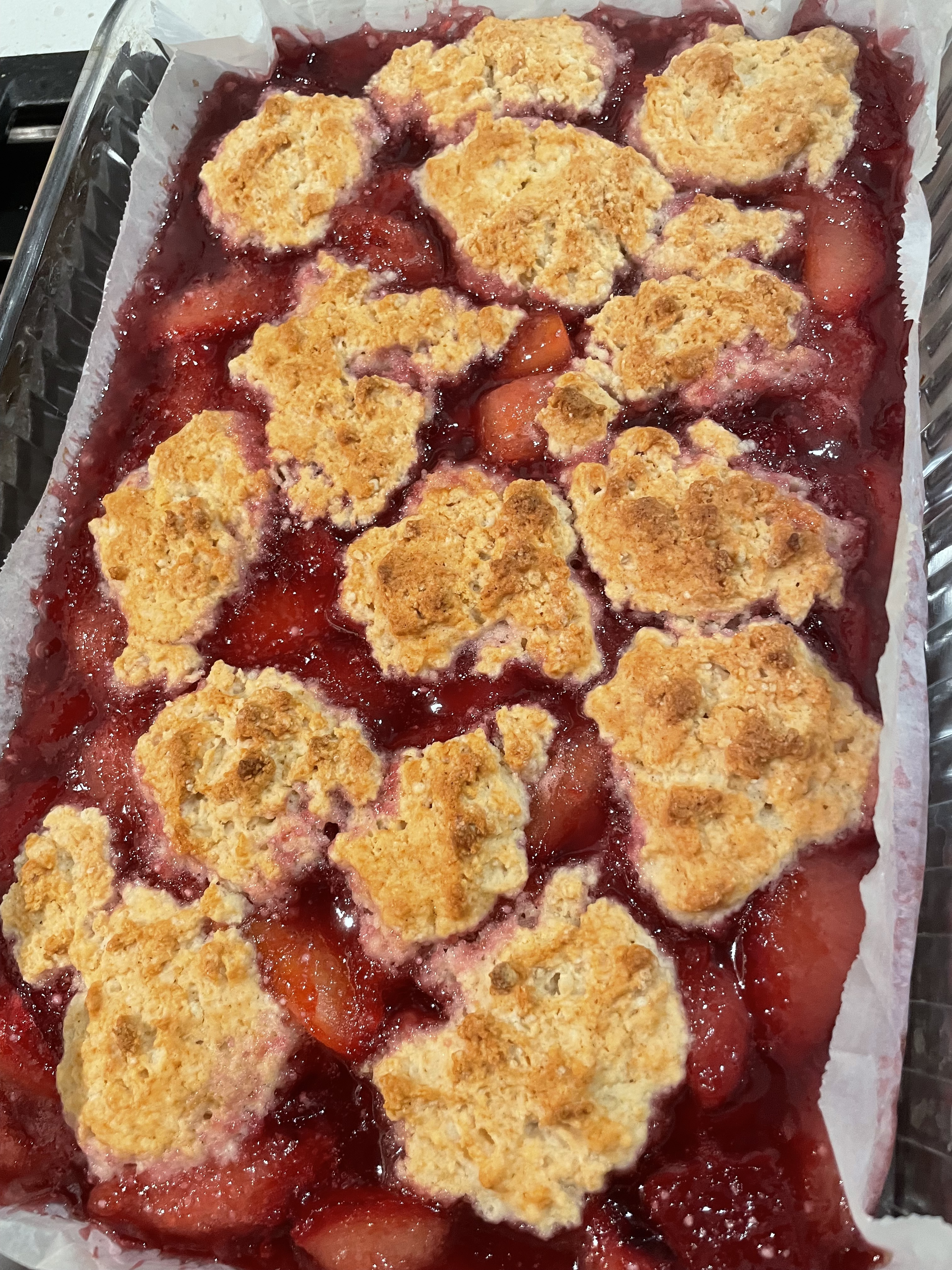 It is a simple cobbler recipe. I’ve made lots of them over the years, especially apple.