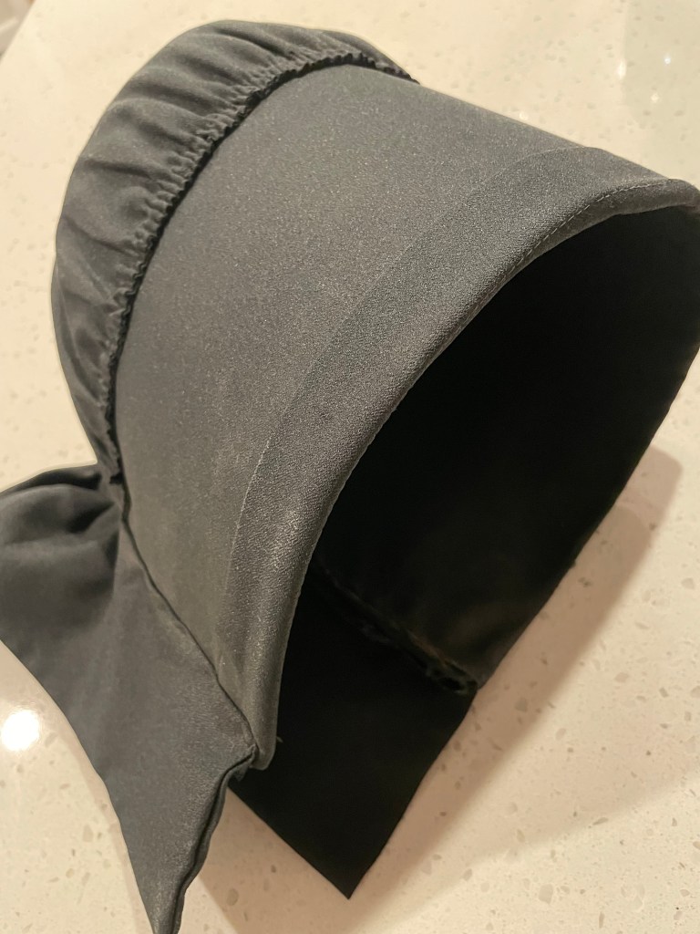 The women wear plain, usually dark-colored, dresses and caps, such as the one above, while men wear black hats and black or dark blue clothing and grow beards.