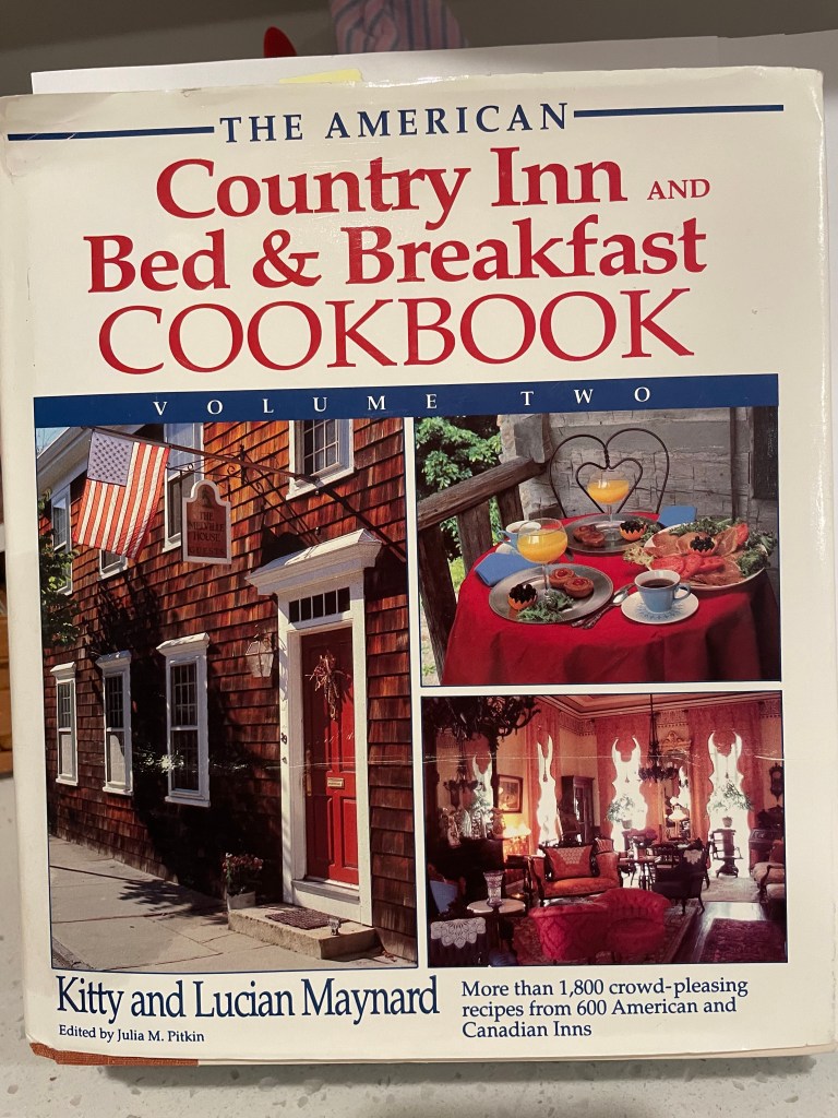At home, I happily found a recipe for Persimmon Pudding in ‘The American Country Inn and Bed and Breakfast Cookbook Volume 2’ (1990). My new fruits would go in this recipe.