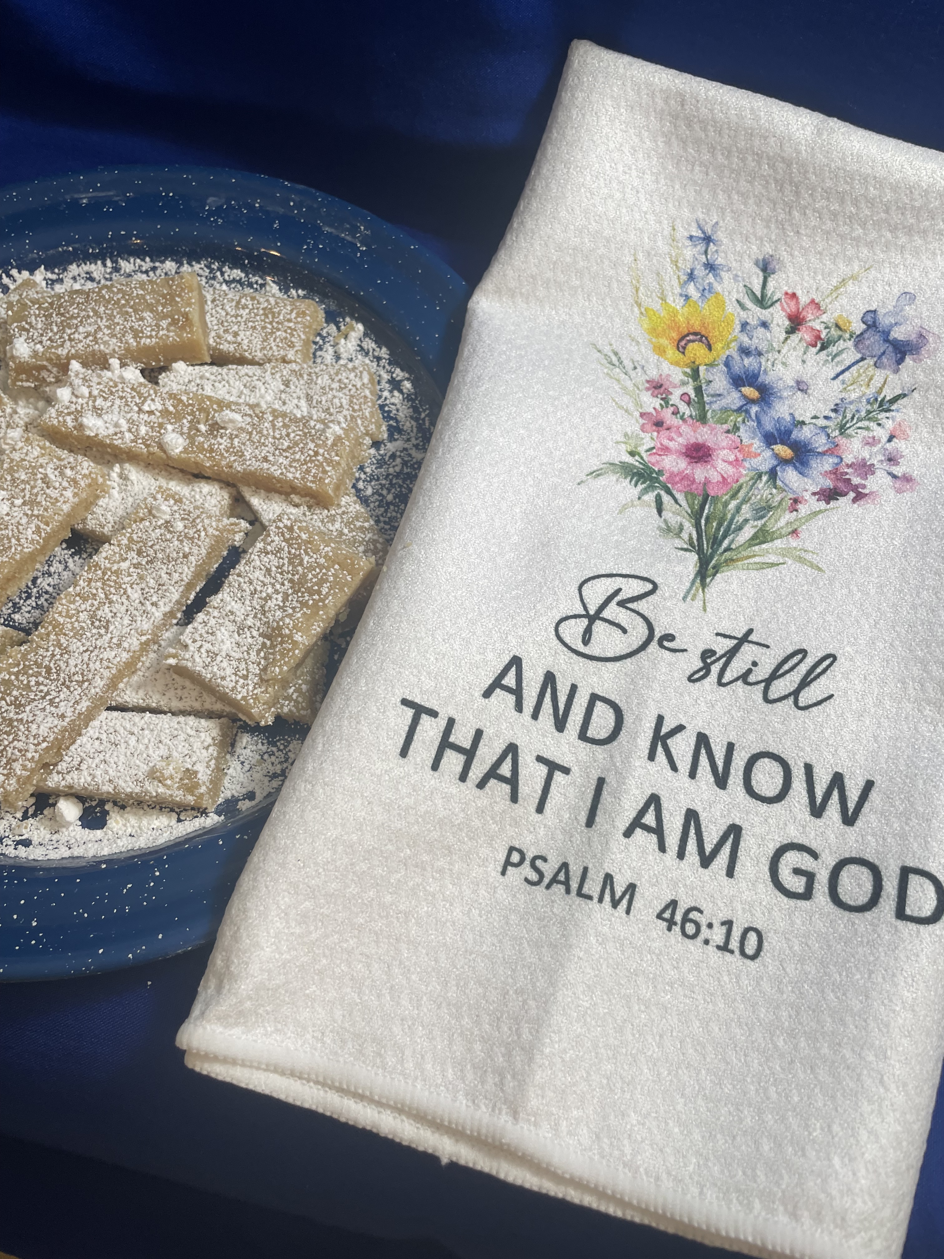 The kitchen towel in the photo with a Bible text is a Christmas gift from my kids at my request. I love it! Find similar products on Amazon searching under ‘Bible quote hand towels.’