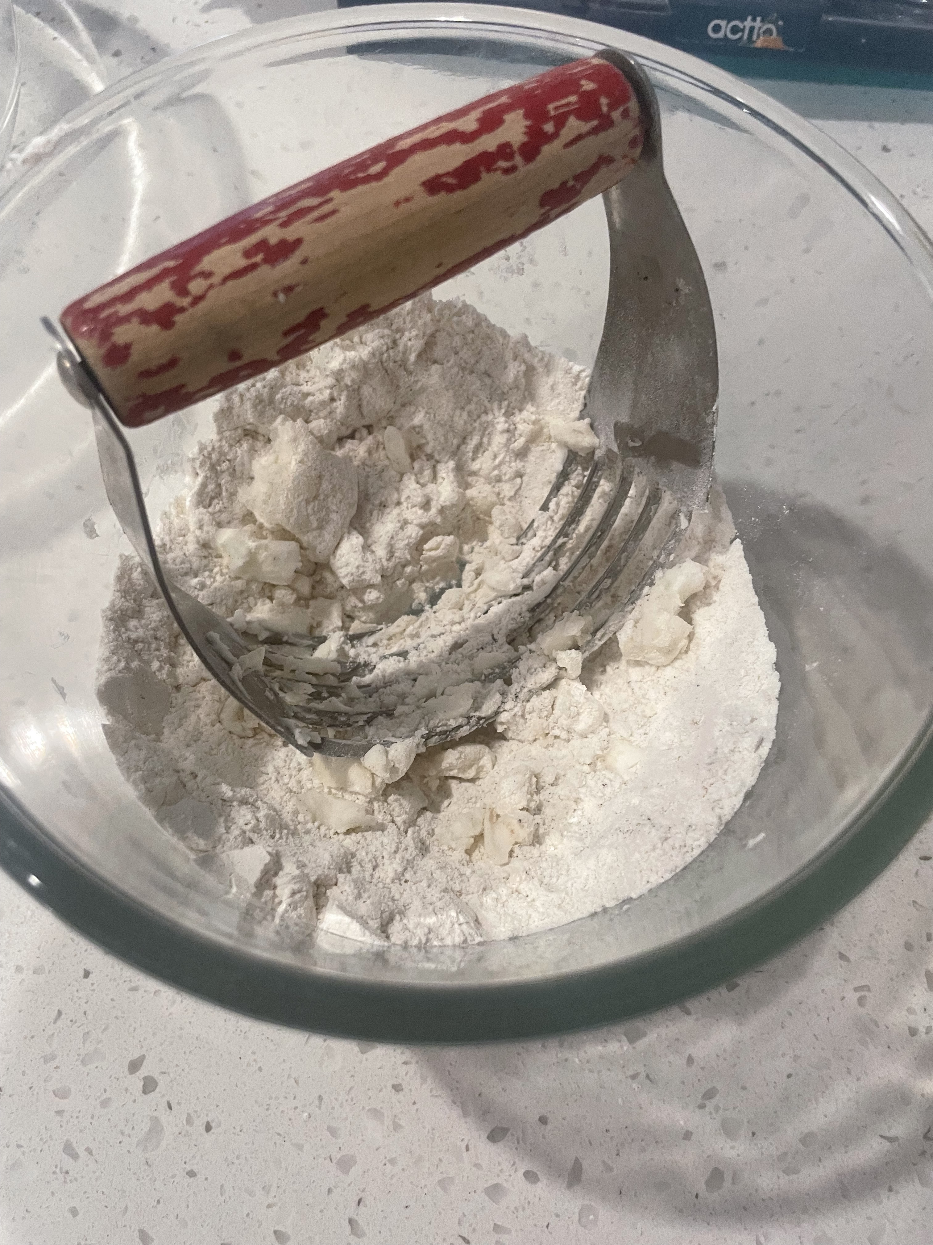- An old-fashioned pastry blender to mix the shortening/butter into the sugars and flour was fun to use but hard to clean. Next time I’ll use my hands.