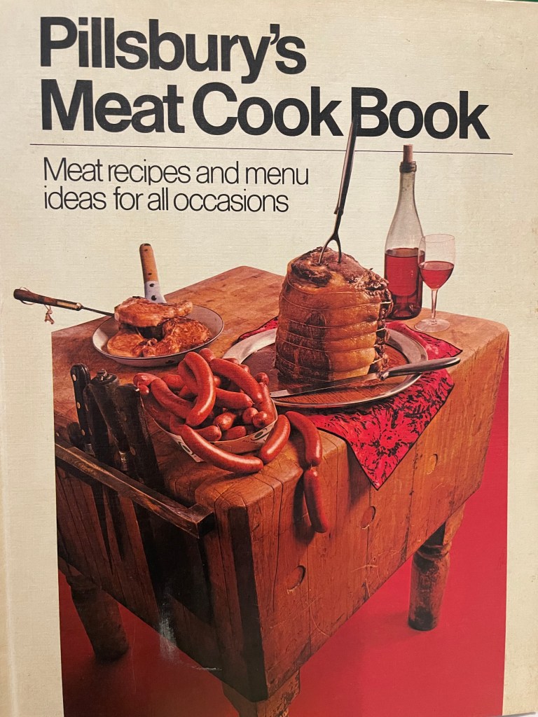 The recipe comes from the Pillsbury Meat Cook Book, Pillsbury Publications (1970). It is a hardback with 144 pages filled with meat recipes and menu ideas for all occasions. There are even sections for cooking meat with wine, choosing a meat thermometer, and carving sets.